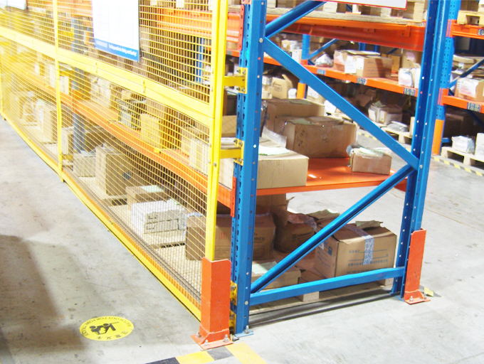 貨架背網:是一種將貨架放貨區域進行保護的金屬網墻,使空間規劃隔離,貨物分類隔離存放,防止散件物品高空掉落。