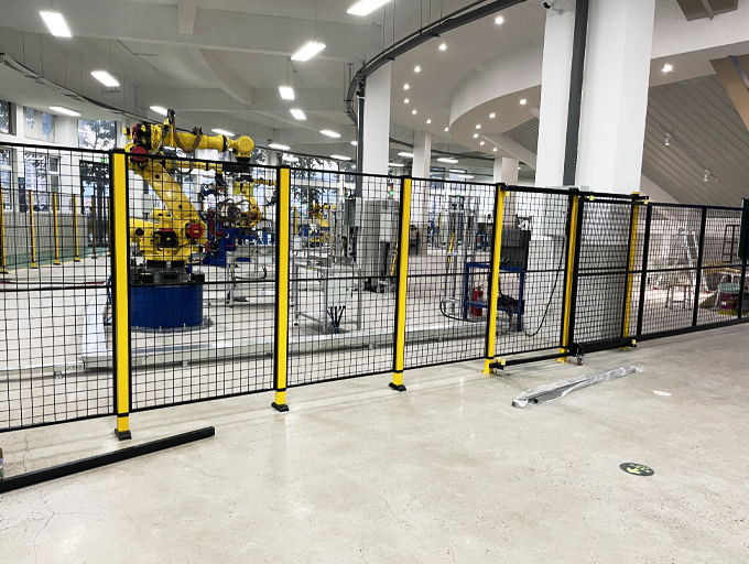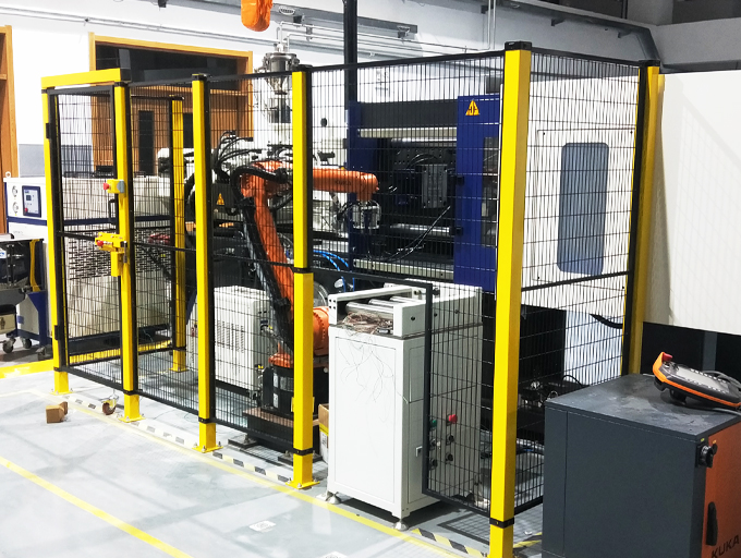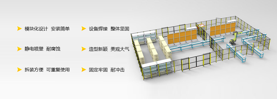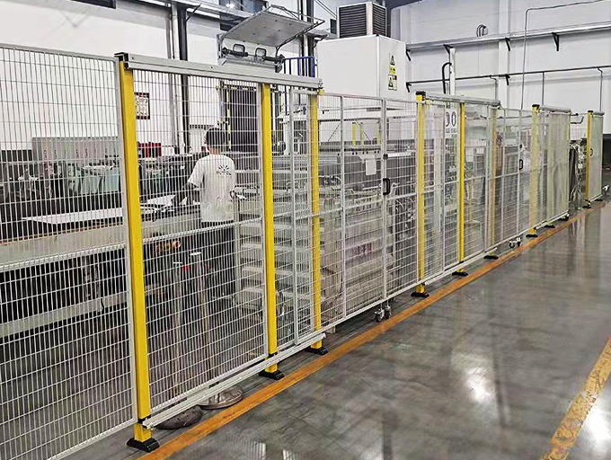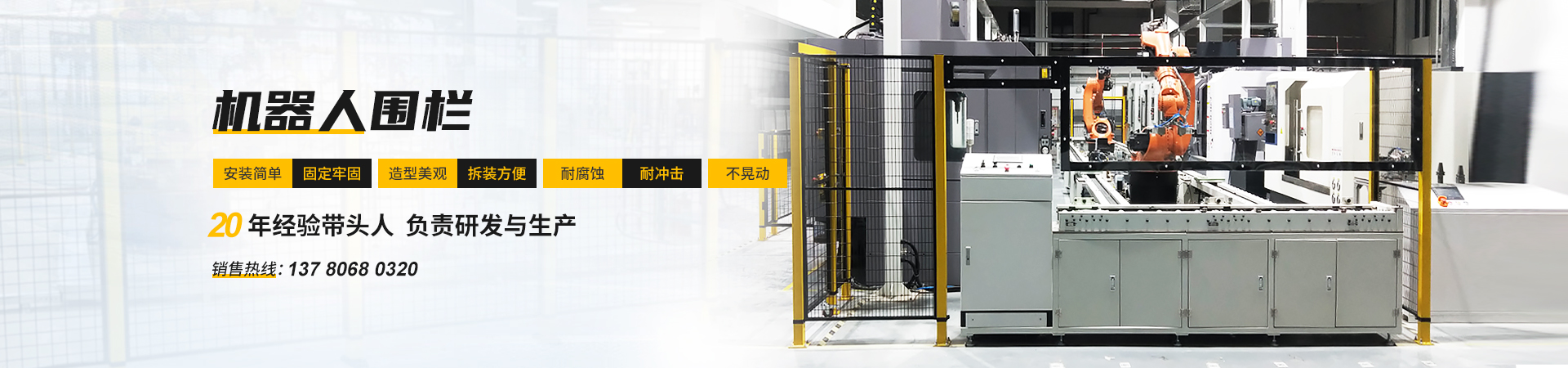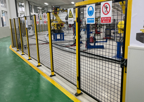 機器人圍欄介紹:機器人圍欄是在機器人正常工作生產之外的一定距離內設置的防護措施,為人員或機器人提供保護,防止材料或其它部件從機器人中噴出,以確保工作人員和機器人的安危。同時將安裝安全門或留出通道,以方便貨物進出和人員維護。